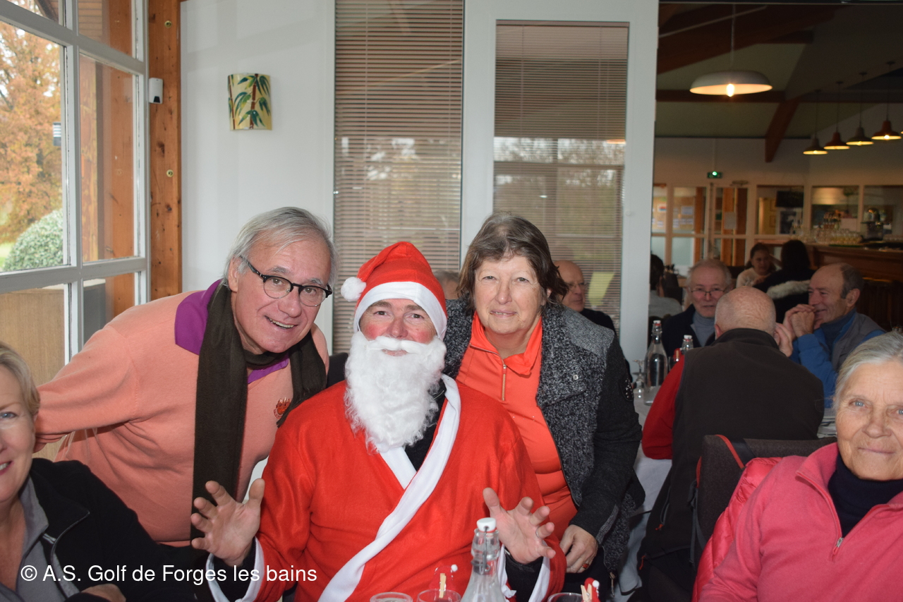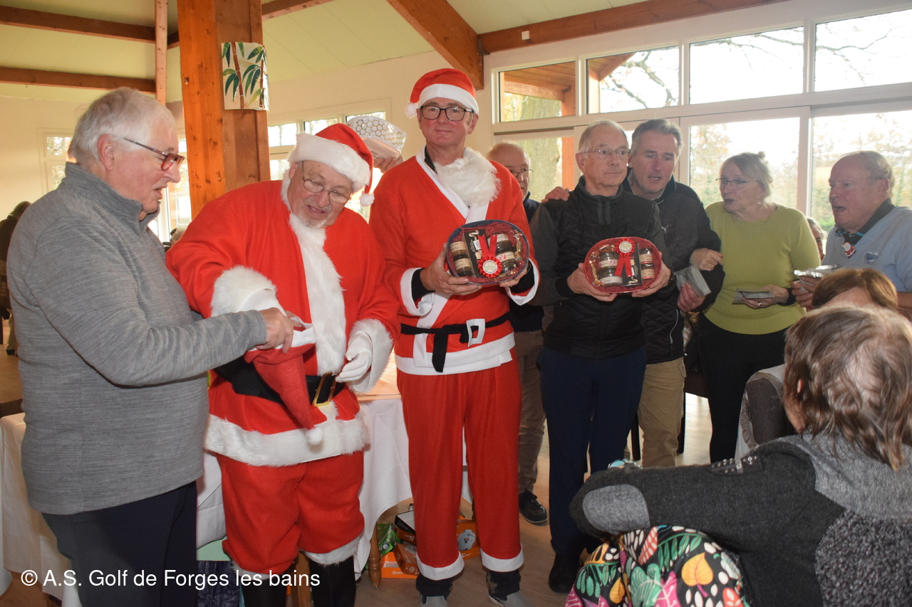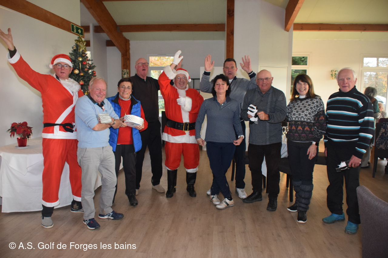Les semainiers ont affronté ce jeudi 8 décembre la brume, puis le froid, mais tous étaient heureux de se retrouver pour un repas de Noël préparé par le restaurant de Forges, et partiellement financé par l'AS. De nombreux lots ont été distribués aux vainqueurs de la formule du jour - un Shamble à 3 et par équipe-, mais aussi à tous les autres participants : un Noël avant l'heure !