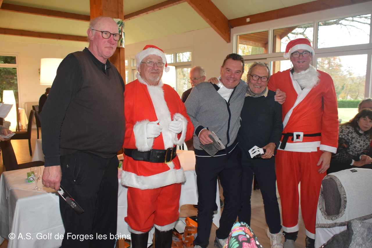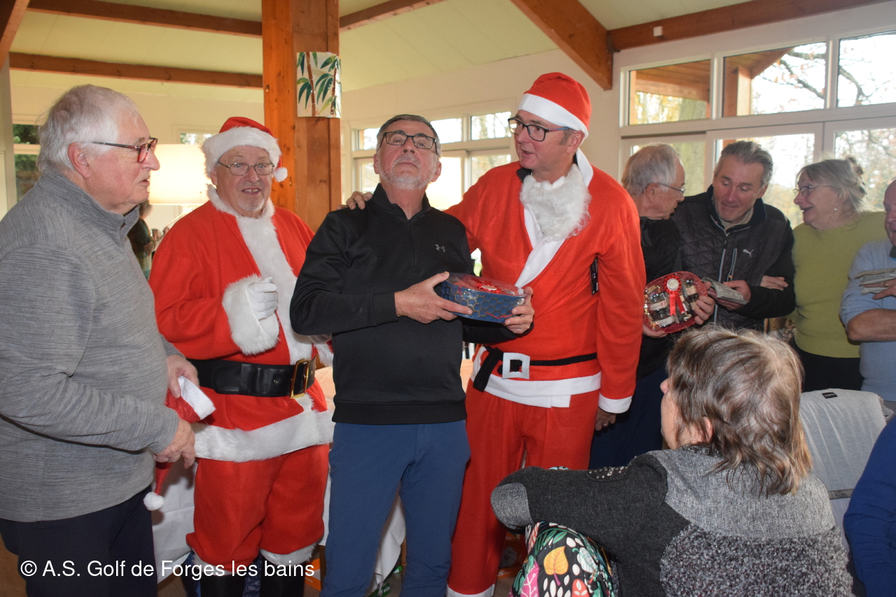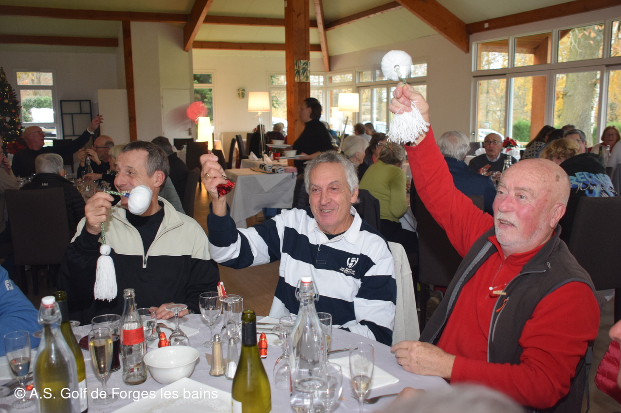 Les semainiers ont affronté ce jeudi 8 décembre la brume, puis le froid, mais tous étaient heureux de se retrouver pour un repas de Noël préparé par le restaurant de Forges, et partiellement financé par l'AS. De nombreux lots ont été distribués aux vainqueurs de la formule du jour - un Shamble à 3 et par équipe-, mais aussi à tous les autres participants : un Noël avant l'heure !